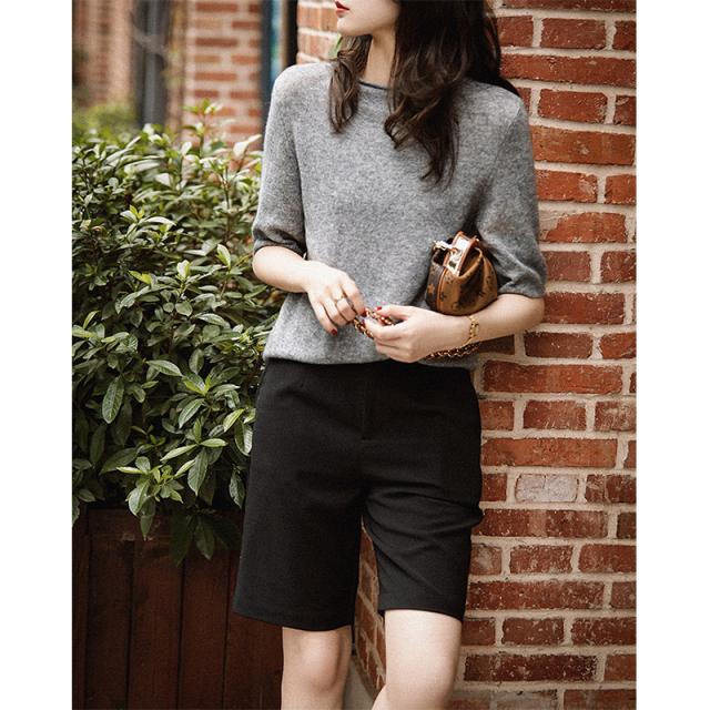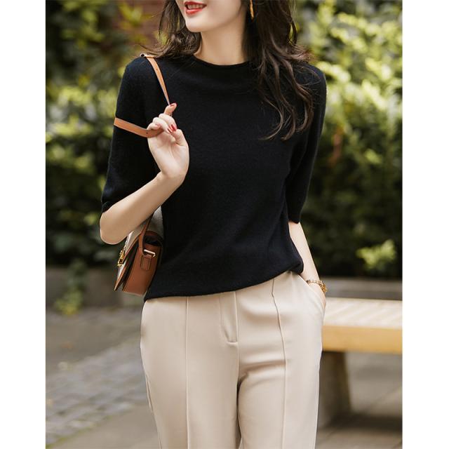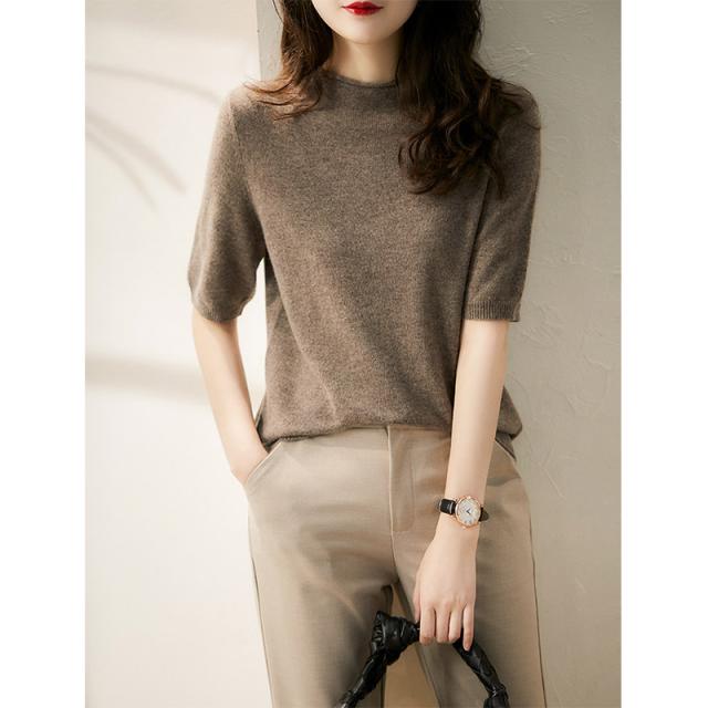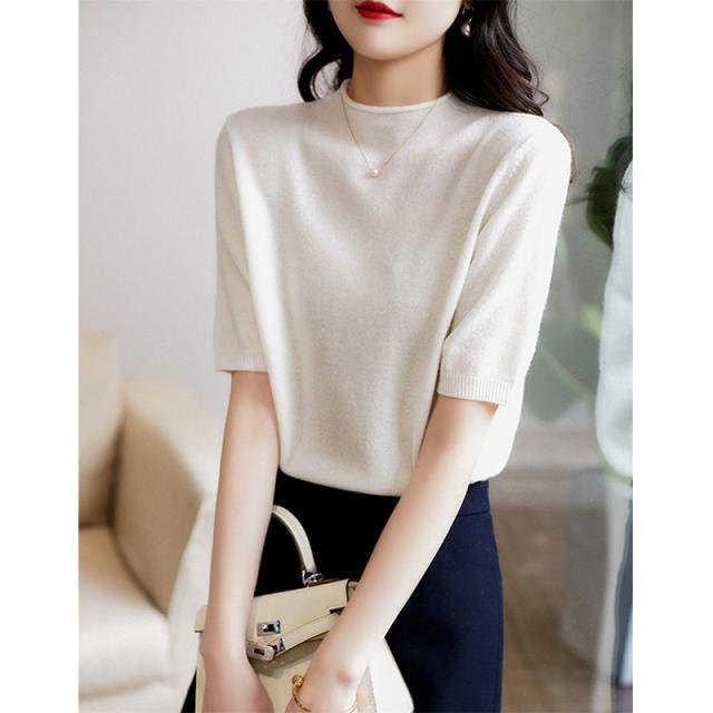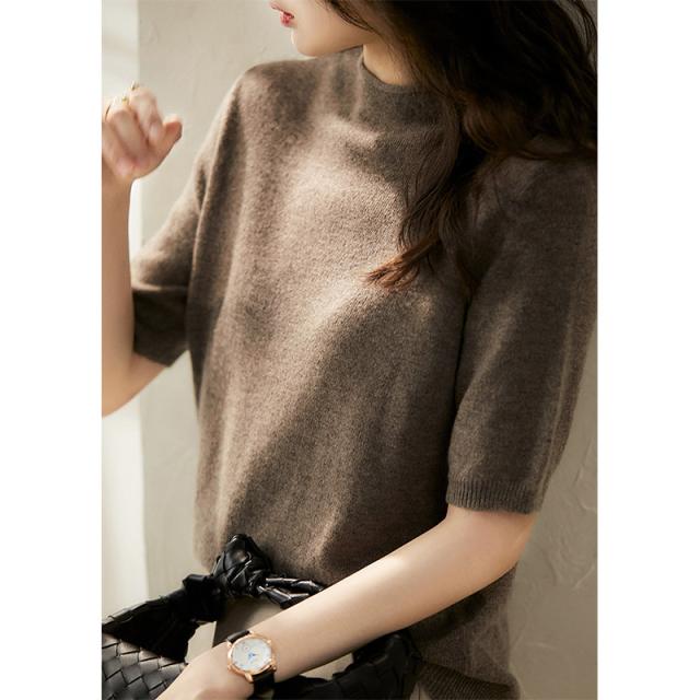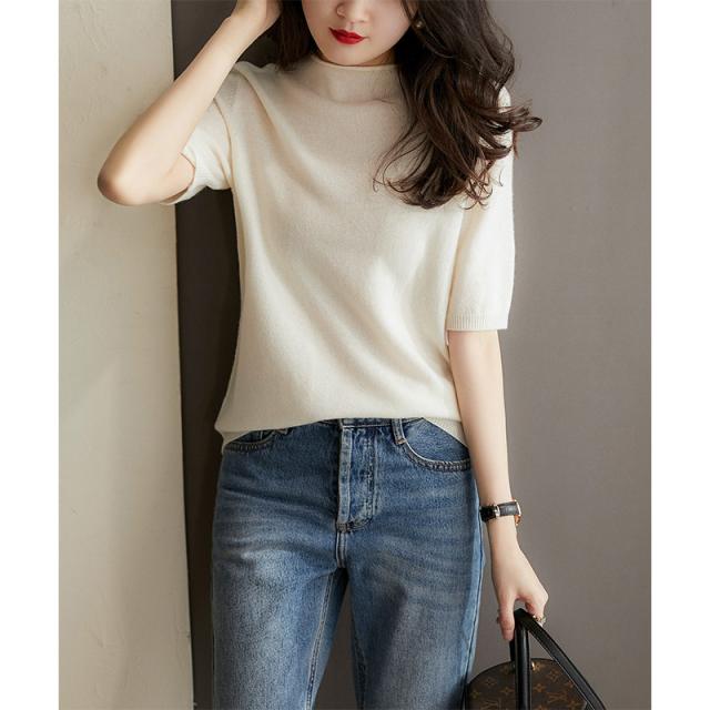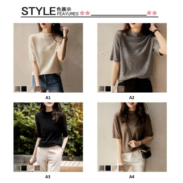 【関連キーワード】ニット 二の腕カバー 五分袖 半袖 サマーニット ハイネック トップス 半袖ニット シンプル 涼しい 冷房対策 きれいめ オフィス カジュアル 20代 30代 40代 母の日 プレゼント ギフト 通勤 肌着 柔らかい 無地 シンプル