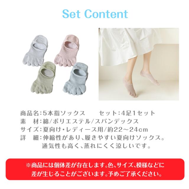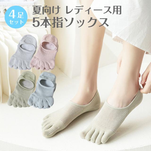 レディース 靴下 5本指ソックス 4足セット ソックス 涼しい おしゃれ カラフル 大人 かわいい 春夏 socks24