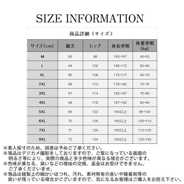 サイズ:/M/L/XL/2XL/3XL/4XL/5XL/6XL/7XL/8XL