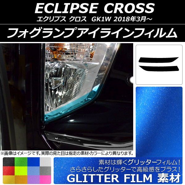 フォグランプアイラインフィルム グリッタータイプ ミツビシ エクリプス クロス GK1W 2018年03月〜 選べる12カラー 入数:1セット(2枚) AP-YLGL115 カラー: ブラック ホワイト レッド ブルー イエロー グリーン オレンジ パープル ピンク ライトイエロー ライトブルー ライトブラック