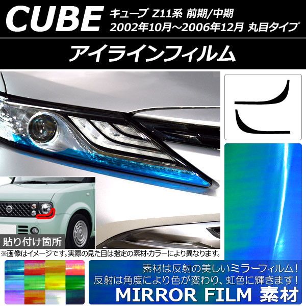 アイラインフィルム ミラータイプ ニッサン キューブ Z11系 前期/中期 丸目タイプ 2002年10月〜2006年12月 選べる12カラー 入数:1セット(2枚) AP-YLMI132