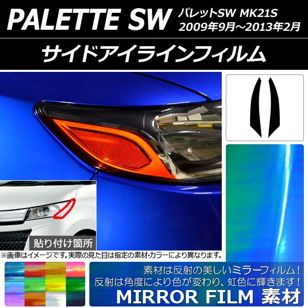 サイドアイラインフィルム ミラータイプ スズキ パレットSW MK21S 2009年09月〜2013年02月 選べる12カラー 入数:1セット(2枚) AP-YLMI176 カラー: ブラック レッド ブルー イエロー グリーン オレンジ パープル ピンク クリア ライトイエロー ライトグリーン ライトブルー