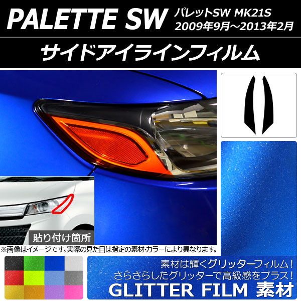 サイドアイラインフィルム グリッタータイプ スズキ パレットSW MK21S 2009年09月〜2013年02月 選べる12カラー 入数:1セット(2枚) AP-YLGL176 カラー: ブラック ホワイト レッド ブルー イエロー グリーン オレンジ パープル ピンク ライトイエロー ライトブルー ライトブラック