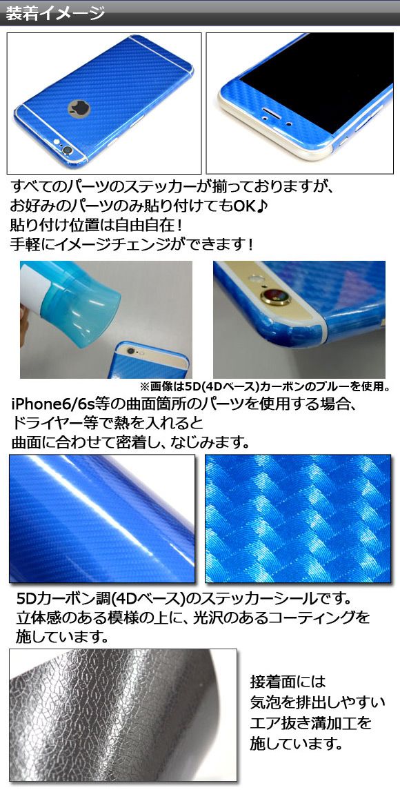 スキンシール 5Dカーボン調(4Dベース) iPhone用 背面タイプ1 保護やキズ隠しに! 選べる20カラー iPhone5,6,7など AP-5FR1363