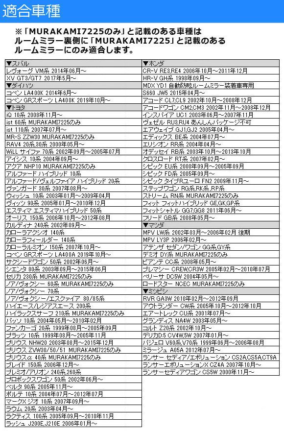 ルームミラー裏側に「MURAKAMI7225」と記載のあるルームミラーにのみ適合します。