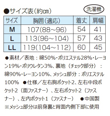 ●素材/表地:綿50%・ポリエステル28%・レーヨン19%・ポリウレタン3%、裏地(チェック部分):綿90%・レーヨン10%、メッシュ部分:ポリエステル100%