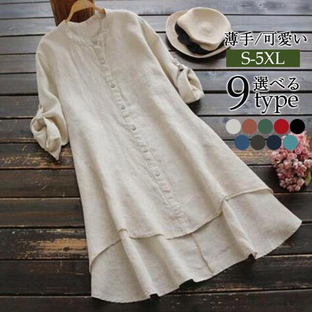 ワンピース シャツワンピース レディース チュニック 冷房対策 羽織 夏 春 秋 ロングシャツ 体型カバー ゆったり 長袖 リネン