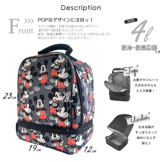 ランチバッグ ディズニー ミッキーマウス ミッキー 総柄 2段 保冷 保温 保冷バッグ 女の子 お弁当 子供 大人 キャラクター 弁当袋 ファスナー付き