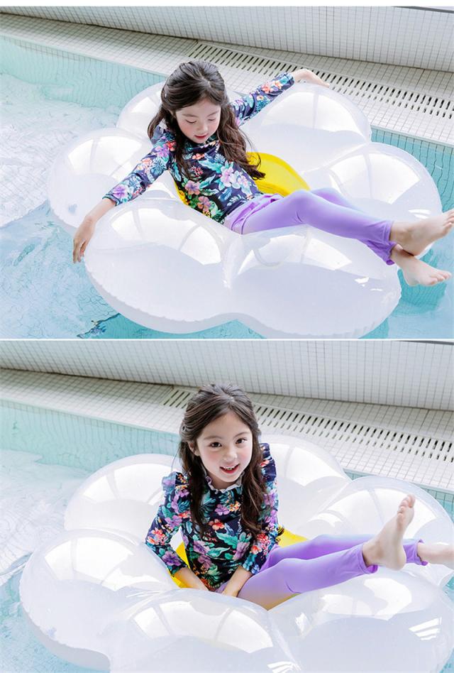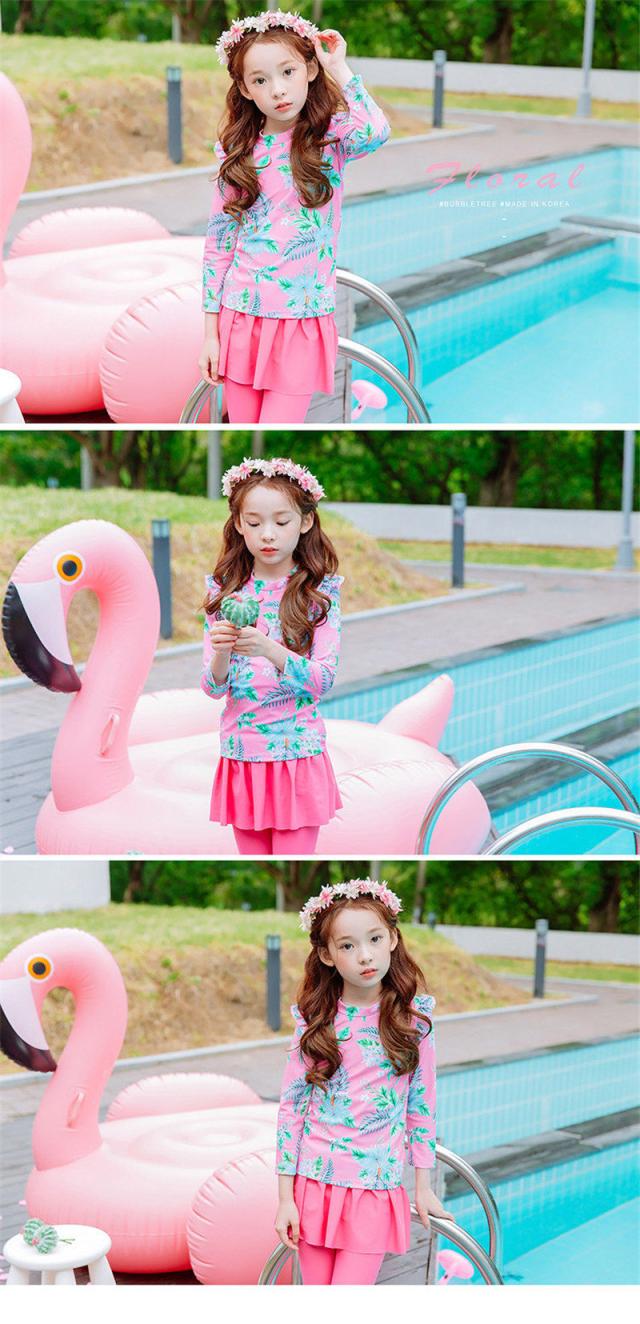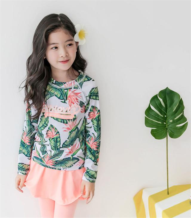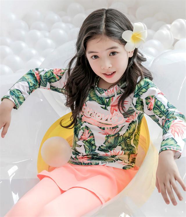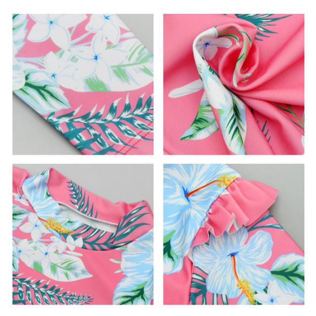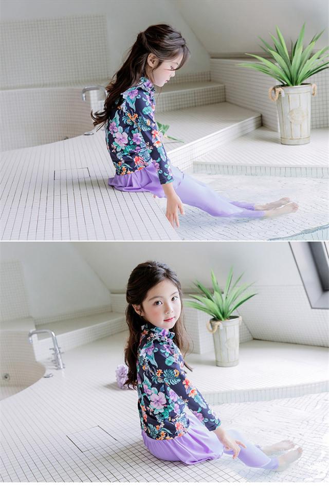 長袖のラッシュガードとパンツの花柄プリント水着2点セット