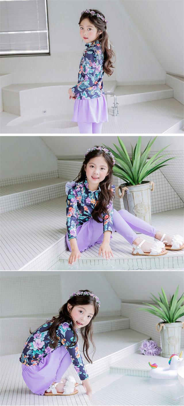 キッズ 水着 女の子 セパレート スクール水着 長袖 トップス ロングパンツ ラッシュガード 日焼け止め 紫外線対策 スイムウェア