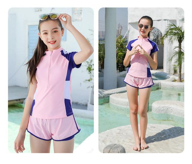 スクール水着 女の子 キッズ 水着 セパレート 短袖 トップス ショートパンツ 2点セット スポーツウエア シンプル ジュニア ラ