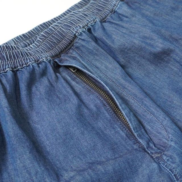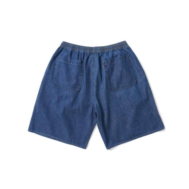 薄手デニム素材を使用した、ワイドシルエットのイージーショーツ。