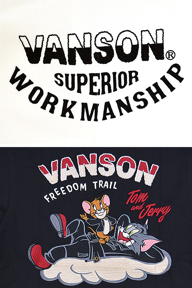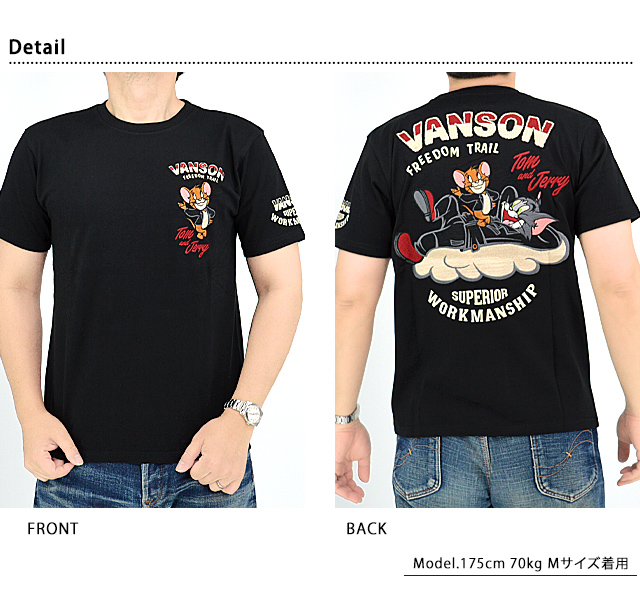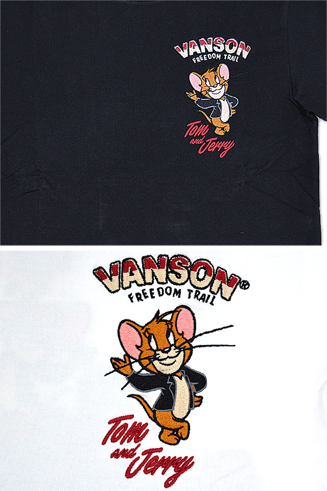 vanson×TOM&JERRYコラボ 天竺半袖Tシャツ vanson TJV-2326 バンソン ヴァンソン トムとジェリー 刺繍 バイカー