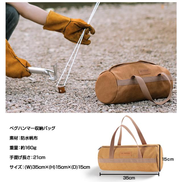 テントやタープの設営に欠かせないペグ・ハンマーを持ち運ぶ収納バッグです。