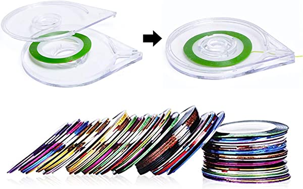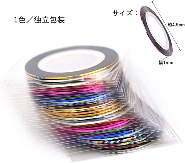 商品内容 パッケージリスト: ネイルライン×30巻(径4.5cm) 専用長テープケース×2個 超極細の1mm幅 長さも余裕の20m! 1本あれば長く使っていただけます。