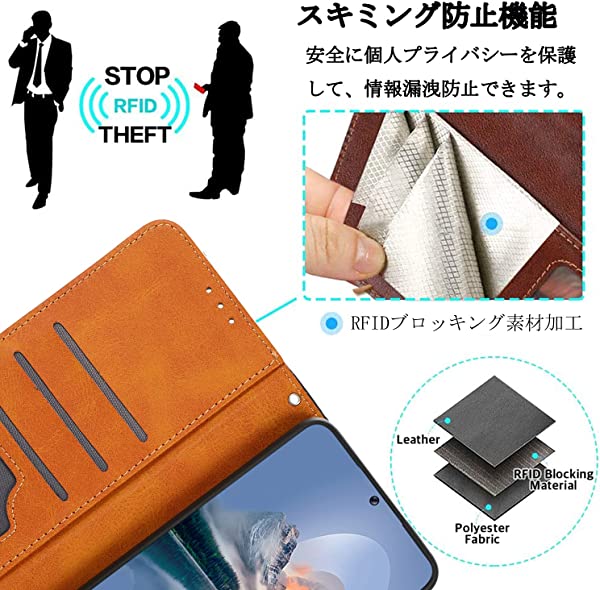 写真収納機能 カバーの内側には3つのカード収納、フリーポケット1つがついています。 定期券やよく使うカードを収納しておけば、取り出さずに改札もOK。通勤通学も楽々です。お札も入れられます、ちょっとしたお出かけに便利です。 もっと読む マグネット式&カメラレンズ保護&ソフトなインナーケース サイドマグネット式 カバーに搭載されているマグネット式のフリップにより、カバーをしっかり固定することができます。 片手で簡単に開くことができ、カバーを閉じると勝手にマグネットが着くので手間がかかりません。 RFIDスキミング防止技術 素敵なRFIDスキミング防止技術が備えます。カードから発送した無線信号が遮られて、スキミングスリは貴方のカード情報を窃取できなくなります。安ぜんに個人プライバシーを保護して、情報漏洩防止できます。 耐衝撃 インナーケースは防震、衝撃吸収できるTPU素材を採用してあり、スマートフォンを