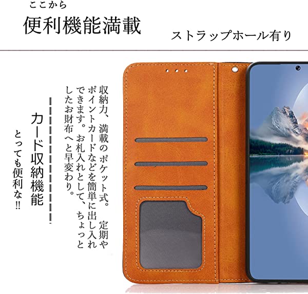 【シンプルで上品なデザインに、一点一点丁寧に仕上げたスマホケース】:外部は耐熱性と柔軟性を誇るPUレザーを採用した、キズや汚れに強く、放熱性や耐衝撃が良く、携帯本体落下防止に役立ちし、落としても衝撃を緩やかにして、携帯カバー隅々までしっかりを全面保護できます。インナーケースは弾力性のあるソフトTPU素材を採用しており、脱着が楽々で、さらにカメラより高めのデザイン、カメラを擦り傷から保護します。