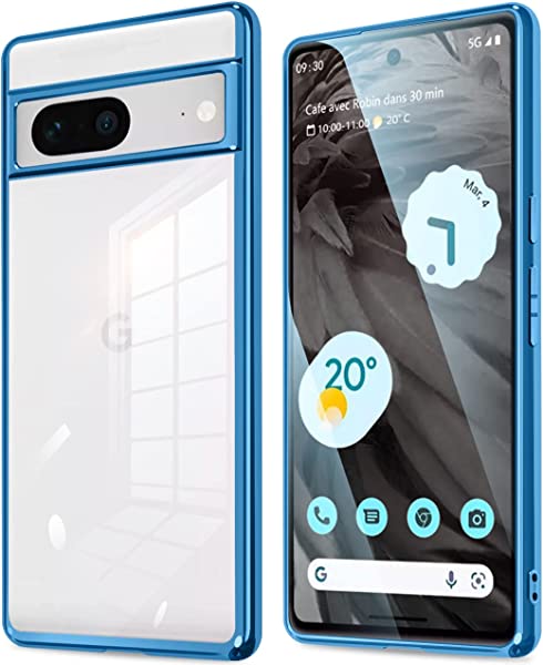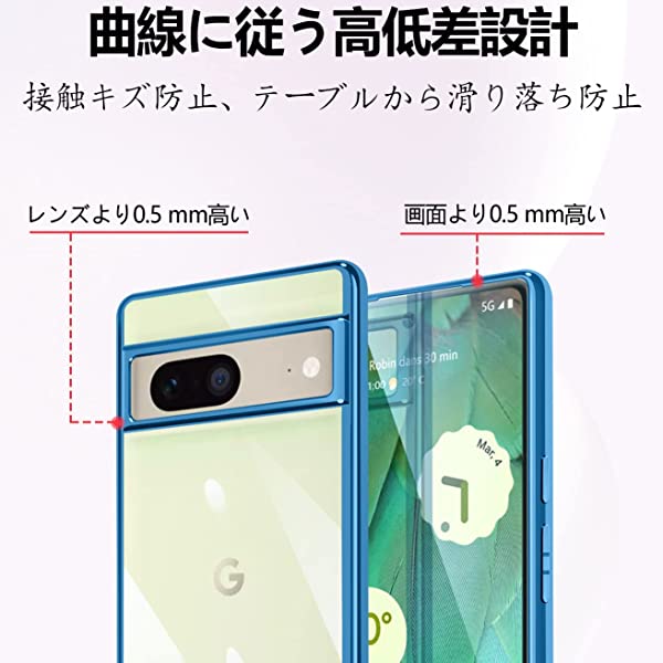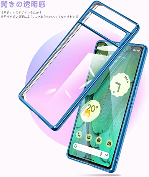 Google pixel 7 ケース クリア 透明 耐衝撃 柔軟 黄ばみ防止 薄型 液晶保護 スマホケース ソフト tpu 青縁 背面クリア メッキ加工 カバー (ブルー)