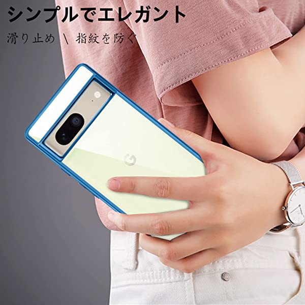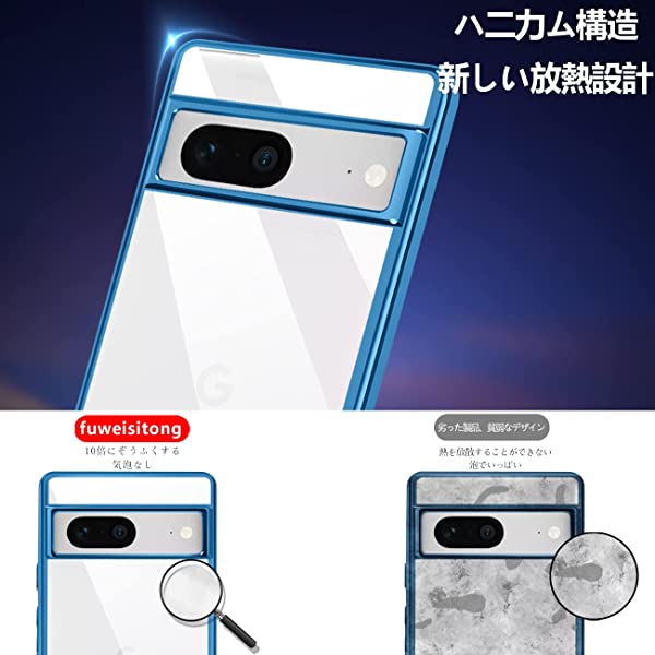 Google pixel 7 ケース クリア 透明 耐衝撃 柔軟 黄ばみ防止 薄型 液晶保護 スマホケース ソフト tpu 青縁 背面クリア メッキ加工 カバー (ブルー) 送料無料