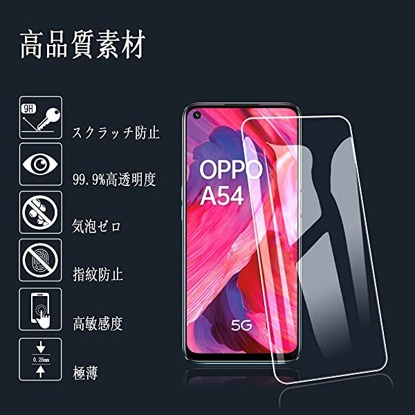 OPPO A54 5G フィルム [2枚セット] oppo a55s 5g ガラスフィルム au OPG02 強化ガラス 液晶 保護フィルム 硬度9 H 耐衝撃 飛散防止 貼り付け簡単 自動吸着 気泡ゼロ 指紋防止 ラウンドエッジ加工 超薄0.26mm 超高質感 3D Touch