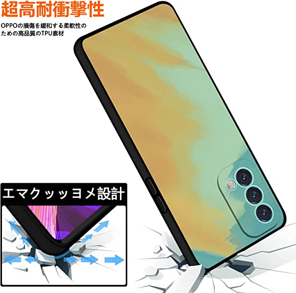 【スタイリッシュな外観】OPPO A93 5G ケースの背面にはカラー絵画のデザインを採用しています。OPPO A93 5G 本体とピッタリ密着して違和感がない一体感がすごく格好いいです. 【使用面へのこだわり】落下時の衝撃を出来る限り緩衝出来るよう、四隅で衝撃を吸収する「エアクッションテクノロジー」を採用。本体機能でもある「ワイヤレス充電」もケースを装着したまま行えます。 【精確なカット加工】精確に加工しているので、OPPO A93 5G の充電ポートやスピーカーに影響しません。 【超薄型&超軽量】OPPO A93 5G 用に設計されており、保護性と軽量性の両立を実現し、まるで付けていない感じです。手の汗を防ぎ、滑り止め、OPPO A93 5G 本来の快適な手触りを復元します。 【全面の保護】OPPO A93 5G の各ボタン部分への操作性、アクセスしやすさを考慮した最適な設計になっております。前面も背面もフチを高く設計し液晶画面とカメラレンズをキズから保護します。ケースの各コーナー内側部分に落下時