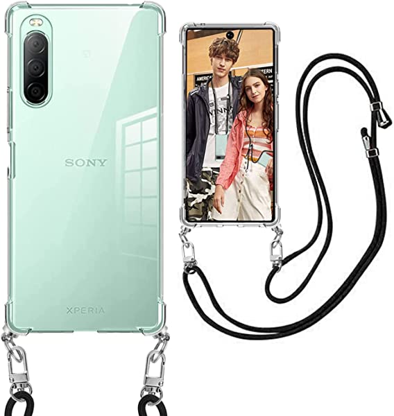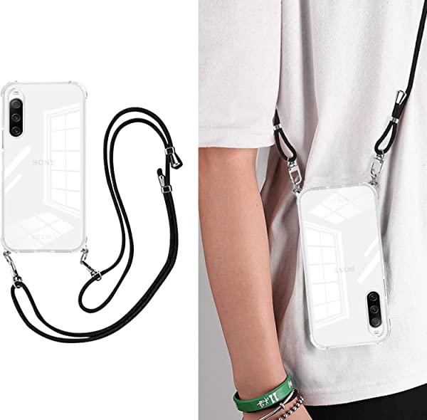 Xperia 10 II ケース SO-41A SOV43 TPU スマホケース クリア ショルダー 耐衝撃 tpu バンパー 肩掛け 斜めかけ 首掛け 縄掛け Xperia 10 2 ケース ショルダー 透明 エクスペリア10 II カバー ック ストラップ付き 斜めがけ 織りストラップ付きラップ着脱可[縄掛け-ブラック ]