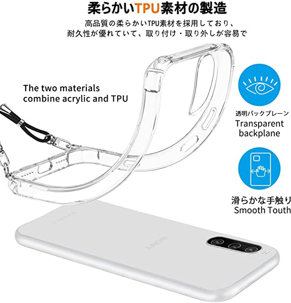 Xperia 10 II ケース にはとネックストラップが付属します、調節可能なストラップにより、サイド、またはフロントに持ち運べるときに完璧にあなたの隣に掛けることができます。 高透明率の高い特殊なTPU素材を持ち、黄ばみも付きにくい。薄くて丈夫で柔軟性が高く、程よいグリップ感があり、本体の持つスリムさをできる限り損なわないよう設計しています。着脱も簡単で、スマホ本体への擦り傷も心配無用です。衝突や引っかき傷から電話を保護できます。ストラップは、一般的なストラップの1.5倍の厚さで、ストラップを壊さない高品質の強化および厚みのあるナイロン素材で作られています。金具は高品質のステンレス鋼でできており、耐久性が高く錆びません。このアクセサリーはファッションだけでなく、通常のストラップよりも快適で実用的です。 作業、旅行、出張、ショピング、散歩、コンサート、パーティーに最
