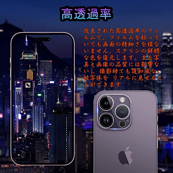 iPhone 14pro / iPhone 14proMax カメラフィルム レンズ フィルム [日本旭硝子製 指紋防止 気泡防止 飛散防止 キズ防止 防塵] iPhone 14pro / iPhone 14proMax カメラ保護 レンズ フィルム[2枚セット]
