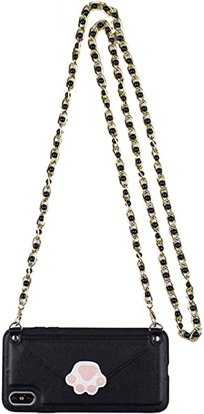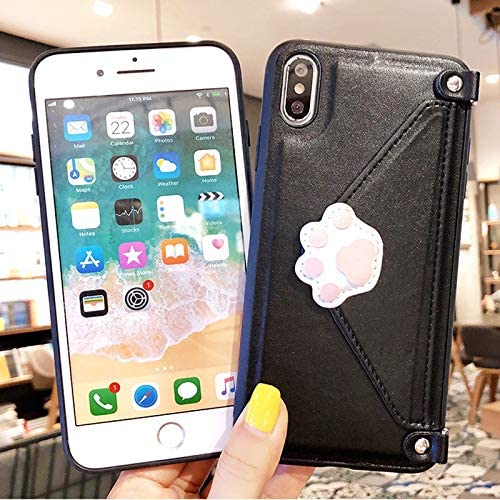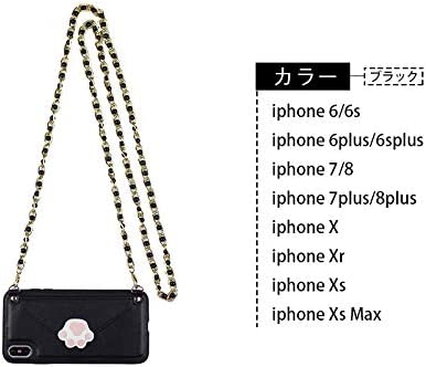 iPhone 7/8用ケース アイフォンカバー ショルダーバッグ 財布型 かわいい猫の爪 ポケット カード収納 小物入れ チェーン付き レザー(ブラック)