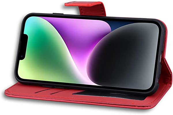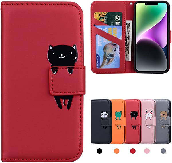 iPhone14 ケース 手帳型 iPhone 14 手帳 カバー iPhone14 手帳型ケース アイフォン14 ケース 携帯ケース iPhone14 case あいふぉん14手帳型ケース マホケース 携帯カバーカード収納 内蔵マグネット式 スタンド機能 肌感PUレザー 衝撃吸収 軽量 放熱性 防水ノート型 お洒落 手帳 (6.1 inch対応) 赤猫