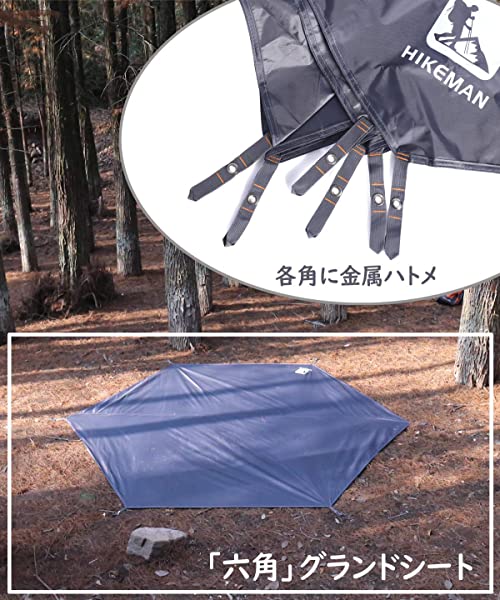 撥水加工:両面の撥水加工を採用し、防水性と防汚性を高めの六角形グランドシート。地面からの湿度や湿気を遮断したり、撤収時に荷物置き場としても使えます。急な通り雨などの天候の変化があっても慌てなくて大丈夫です