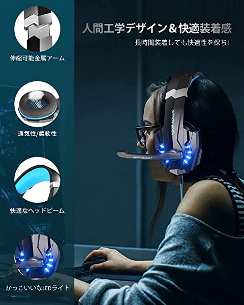 ゲーミングヘッドセット ps4 ヘッドホン ps5 ヘッドセット 有線 マイク付き ゲーミング へっどほん フォートナイト へっどせっと Switch スイッチ ヘッドフォン LED ノイズキャンセリング 軽量 プレステ4/ゲーム用/任天堂/PC/FPS/携帯 対応 男女兼用 プレゼント (青)