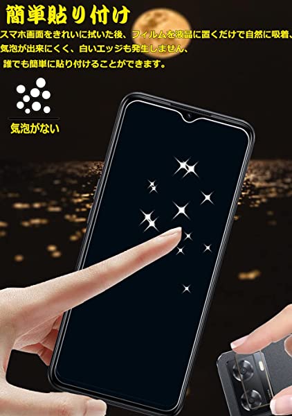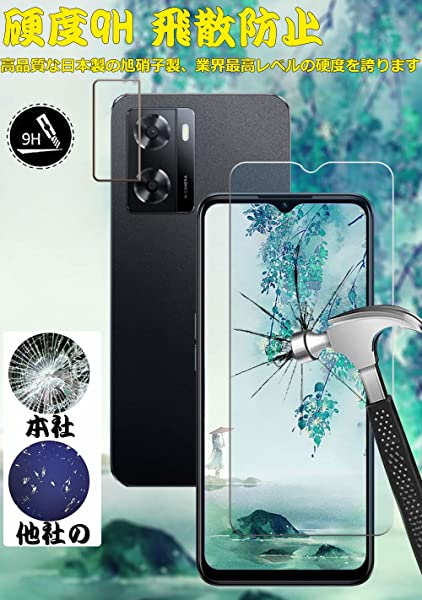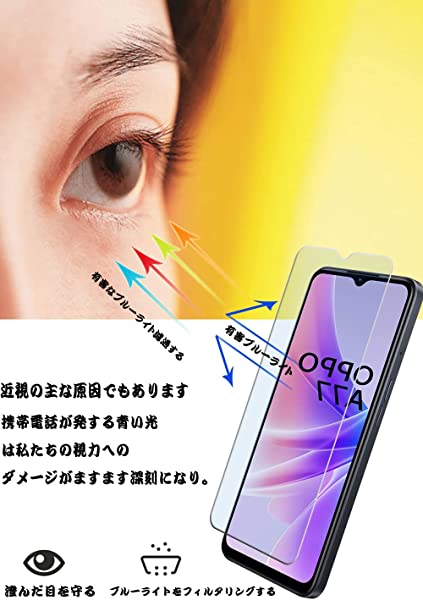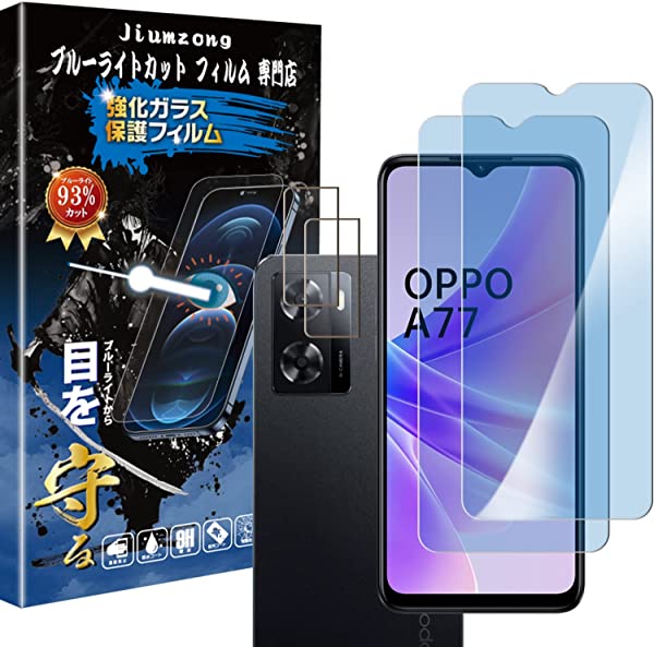 ブルーライトカット 93% 目の疲れ軽減 OPPO A77 【2枚入り】ガラスフィルム+【2枚入り】カメラフィルム CPH2385 液晶保護 フィルム 保護ガラス レンズ保護フィルム 送料無料