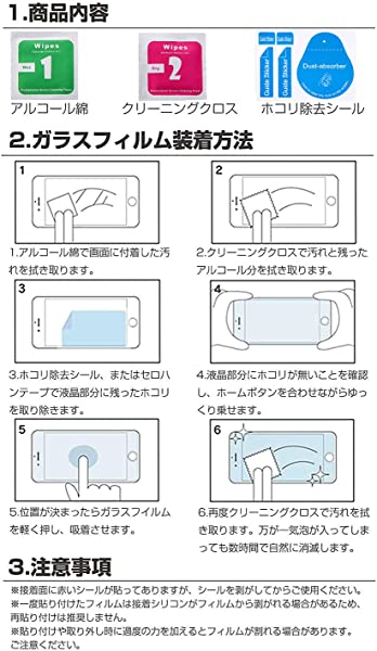 【指紋防止・飛散防止】撥油コーティング加工されているため、ホコリや指紋など汚れにくくなっています。付着しても簡単に拭き取れます。ガラスフィルムは飛散防止加工されておりますので、万が一割れの場合でも、破片が飛び散らず張り付いた状態になります。