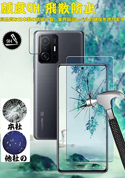 ブルーライトカット 93% 目の疲れ軽減 Xiaomi 11T 5G 【2枚入り】ガラスフィルム+【2枚入り】カメラフィルム Xiaomi 11T pro 5G/シャオミ 11 t 液晶保護 フィルム 保護ガラス レンズ保護フィルム 送料無料