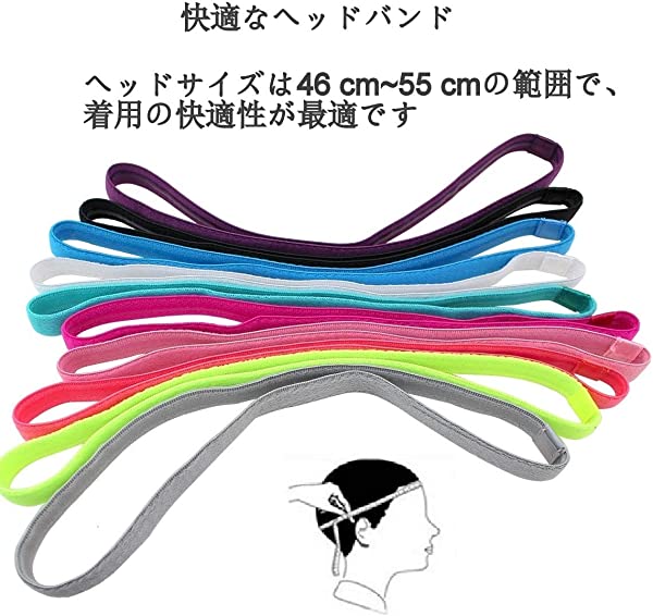 【滑り止め】:裏面にいい肌触りのシリコンゴムが施されていています、ご使用中にヘアバンドがずり落ちるのを防ぐことができます。