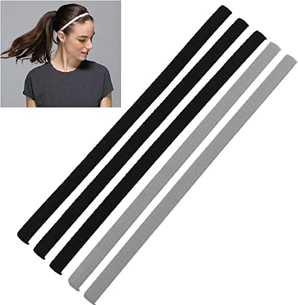 ヘアバンド ヘッドバンド レデイーズキッズ用 細身スポーツ汗止めヘアバンド ランニング サッカー ヨガ 洗顔 軽量 弾性 メンズヘアバンド 黒いとグレー 5枚