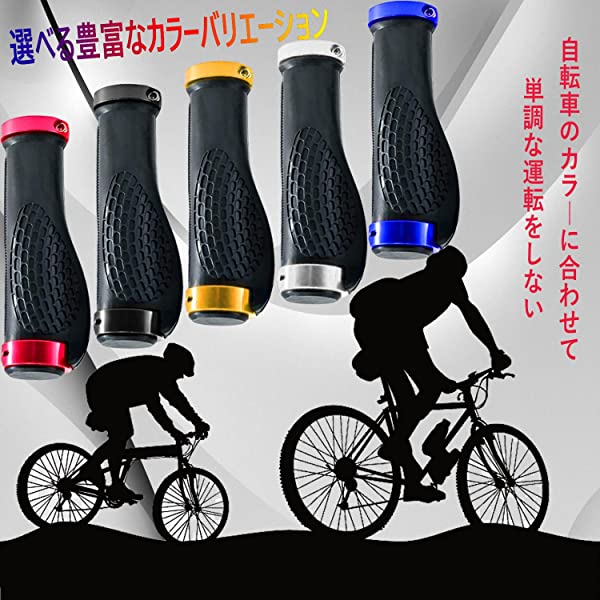 自転車グリップカバー ハンドルバー ラバー 人間工学ハンドルグリップ ゴム製 アルミロックリング付き エンドキャップ付き 耐震 耐久性 滑り止め BMX/折りたたみ自転車/スポーツ自転車 /ロードバイク/クロスバイク/マウンテンバイク用 内径22.2mm 取付工具付 ...