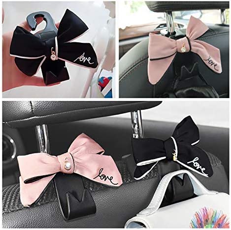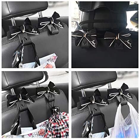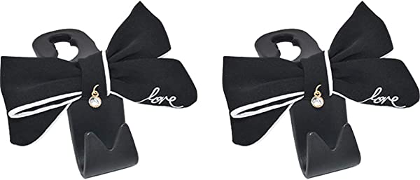 車用 収納 バックシート カーシート フック バックフック リボン 車 可愛い 取り外し不要 通用型 耐荷重20kg 汎用 荷物掛け 2個セット(ブラック】