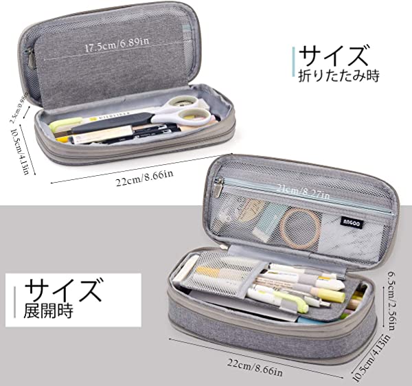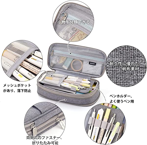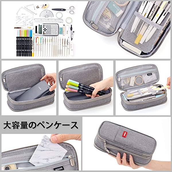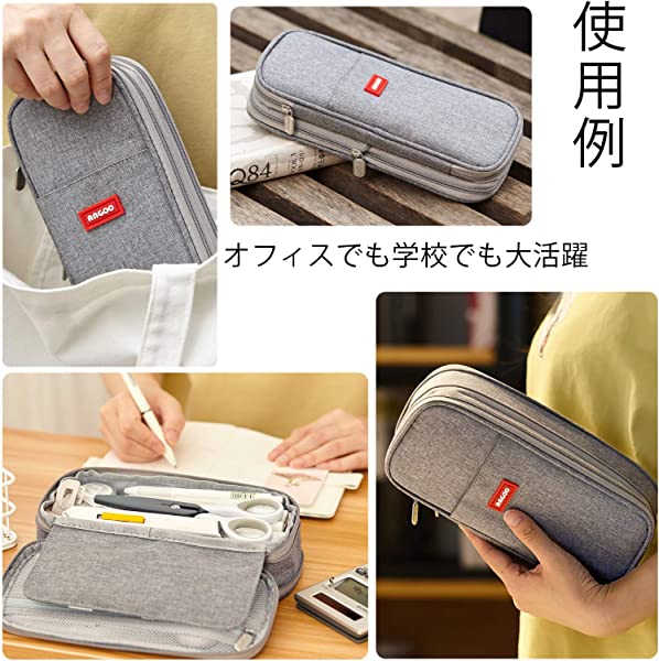 大容量 ペンケース 筆箱 男の子 女の子 子供 小学生 中学生 高校生 大学生 社会人用 (灰色)