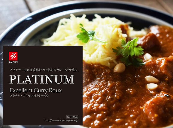 オリジナルブレンドのカレーパウダーを製造するキャニオンスパイスが手掛けた、「プラチナ エクセレントカレールウ」です。