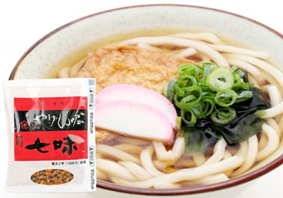 | 唐辛子赤粉、唐辛子赤粉(中国産)、温州ミカン陳皮(国産)、黒胡麻(中国産)、ケシの実(トルコ産)、あおさ(国産)、麻の実(中国産) |