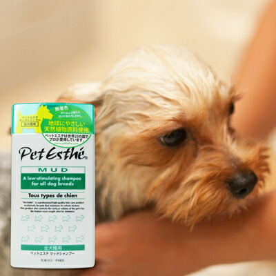 ペットエステ マッドシャンプー≪全犬種用≫は、全ての犬種の被毛と皮フの改善を目的とし、『植物抽出保湿成分(ニンニクエキス、マツエキス、ローズマリーエキス等)』と毛穴の奥に詰まった汚れ(老廃物)を吸着して取り除く『泥ミネラル成分』を植物から抽出しています。