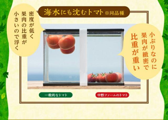 中野ファームのトマトは極限まで水分を与えずに栽培しそのままトマトジュースへと加工しているので、水分と果肉が分離せず、クリーミーで重量感のある飲み口が特徴です。そそいだトマトジュースの表面のデコボコが、水っぽさのない濃厚なトマトジュースの証拠です。