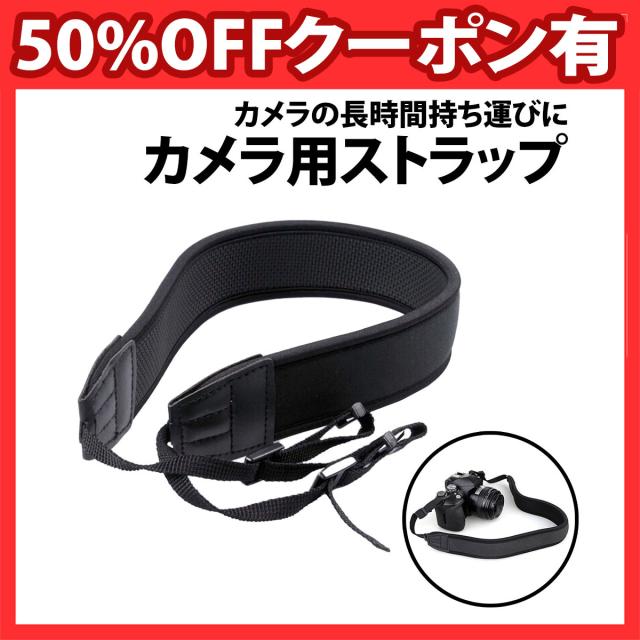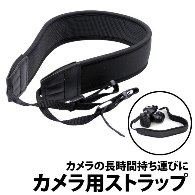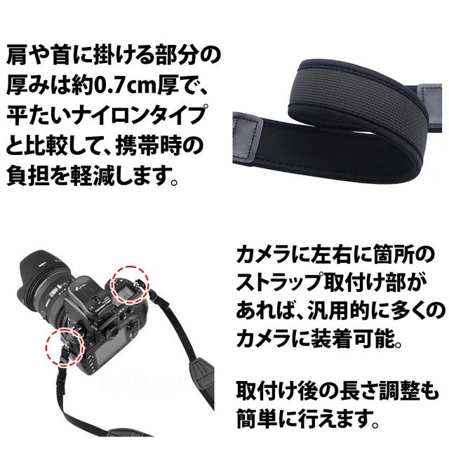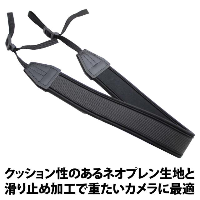 50%offクーポン有 カメラストラップ 一眼レフ 高 クッション ネオプレン素材 柔らかい 滑り止めラバー ミラーレス 交換用 長さ調節可能 ショルダーストラップ ネックストラップ 長時間 痛くならない 負担 双眼鏡 旅行 カメラ ストラップ 黒 シンプル 太め 調節可能 負担軽減