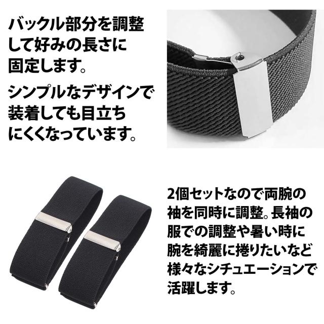 50%offクーポン有 アームバンド 1組 シャツ 長さ 調整 ワイシャツ メンズ 袖 フォーマル アーム バンド ゴムバンド ビジネス アジャスター付き 袖留め 黒 ブラック 無地 シャツガーター メンズ レディース 男女兼用 袖丈調節
