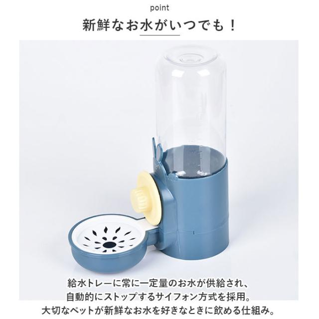 | 商品説明 | ・飼い主さんが外出中でも安心!ワンちゃんもネコちゃんも使える「ペット用給餌器&給水器(ハンガーボウル付き)」が新登場。 『ペット用給餌器』 【フードをたっぷりストック】 ・ドライフードやお気に入りのおやつをたっぷりストックできる1.4Lの大容量設計だから、飼い主さんが長時間外出する日でも安心。 【フードの補充がラクラク】 ・フードやおやつを追加でストックしたいときには、タンクを取り外さずに上部のキャップ部分から補充が可能。 『ペット用給水器』 【毎朝のお世話がスムーズ】 ・給水タンクの容量は、ペットボトル飲料と同じ500ml。毎朝お出掛け前にタンクに水を補充したら、飼い主さんが帰宅するまでたっぷりお水が飲めるから安心! 【新鮮なお水がいつでも!】 ・給水トレーに常に一定量のお水が供給され、自動的にストップするサイフォン方式を採用。大切なペットが新鮮なお水を好きなときに飲める仕組み。 【組み立て簡単・シンプル構造】 ・給餌器も給水器も組み立てはとっても簡単。トレーをシリンダ形状のパーツに差し込んでセットし、フードやお水を入れたタンクを逆さまにセットするだけですぐに使えちゃう!(※給水タンクは、お水を注いだ後にキャップを締めてください。) 【お手入れがしやすい構造】 ・タンク・キャップ・トレー・ごみ取りネットは、それぞれパーツごとに水洗いが可能。毎日のお手入れが楽ちんで、いつでも清潔♪ 【床置き&ハンギングの2WAY】 ・フローリングの床に直置きできるのはもちろん、ペット用ケージ側面にもハンギング設置できる2WAYタイプ。タンク下部の丸ネジで留めるだけの簡単セッティング。 【外出中でも安心・エコ仕様】 ・電池や配線ケーブルなど、電源を必要をしないエコ仕様だから、万が一ペットがお水をこぼしたりしても安心。外出が多い飼い主さんにオススメ。 【イヌ・ネコ共用タイプ】 ・ワンちゃん・ネコちゃんをはじめ、フェレットやチンチラのような小動物にも使えて便利!(※給餌器、給水器別々の販売です。セット品販売ではございませんので、ご注意ください。) |
