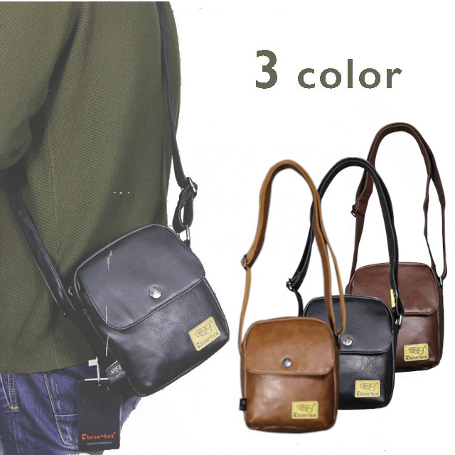 ショルダーバッグ メンズ PUレザー 小さいバッグ タテ型 3色 ブラウン ダークブラウン ブラック 斜め掛け