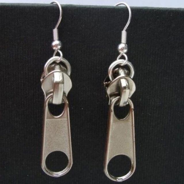 パンクロックな面白いチャックのフックピアスは裁縫店や服屋のスタッフにもおすすめのファッションピアスです。