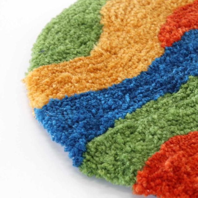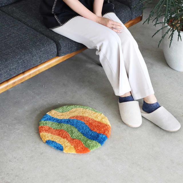 カフェのスムージーのようなカラーが目を惹くマットです。カラフルな色使いがお部屋のアクセントに。流れるような曲線は地層のようなデザイン。円形なのでお好きな角度で設置できます。